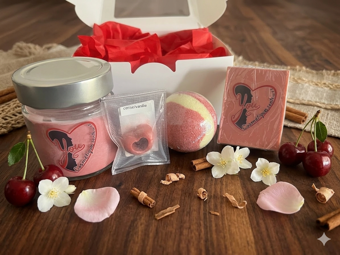 Plongez dans un univers de douceur et d'élégance avec le coffret You Cosmétique Senteurs. Conçu pour offrir un véritable moment de bien-être, ce coffret réunit des créations artisanales qui parfument délicatement votre quotidien et éveillent les sens.